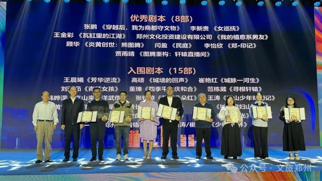 获得优秀剧本的是:张鹏《穿越后,我为商都守文物》、李新贵《女巡抚》、王金彩《瓦缸里的江湖》、郑州文化投资建设有限公司《我的植愈系男友》、顾华《炎黄创世:熊图腾》、闫盈《民庭》、李怡欣《郑·印记》、贾雨晴《图腾重构:轩辕直播间》。